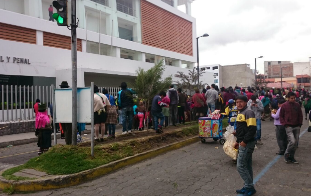 Exteriores de la Unidad Judicial de Cotopaxi, el 14 de agosto cuando se formuló cargos a los detenidos.