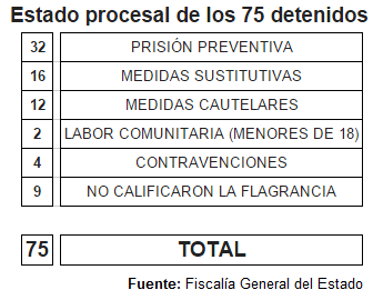 El mayor número de detenidos se encuentra el Pichincha, con 25. De estos, dos son menores de 18 años, quienes deberán cumplir 40 horas de labor comunitaria en la Unidad Judicial de Desarrollo Integral para Adolescentes Infractores.