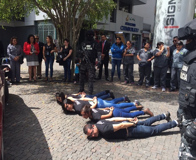 Personal de la Fiscalía de Pichincha informa sobre la gratuidad de los servicios.