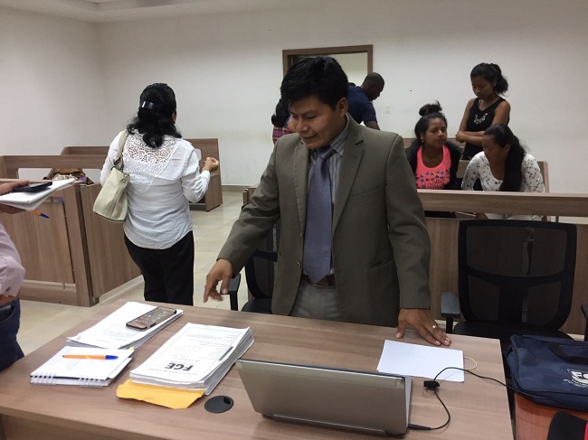La audiencia de juzgamiento se desarrolló el 23 de febrero del 2017, ante los jueces Frowen Alcívar, Esperanza Araujo y Héctor Jines. En esta diligencia la Fiscalía contó con un traductor, para garantizar los derechos de igualdad del procesado, quien afirmó no entender el español, pues su lengua materna es el kichwa.