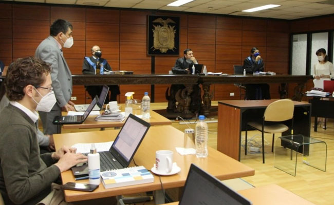 El Tribunal, integrado por los jueces Iván León, Javier de la Cadena y José Layedra, suspendió la audiencia y dispuso su reinstalación para el jueves 15 de octubre de 2020, a las 09:00.