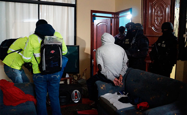 El operativo se realizó durante la madrugada de este viernes 13 de octubre en los sectores de Chillogallo, La Magdalena y Santa Bárbara, ubicados al sur de Quito, para detener a 6 personas en 8 allanamientos a inmuebles y locales comerciales.