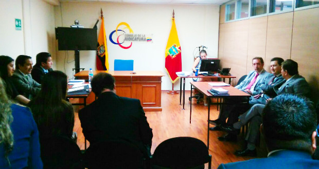 La audiencia de revisión de medidas contra cuatro personas dentro del caso ‘Petroecuador’ se realizó en la Unidad Judicial de Garantías Penales, en Quito.