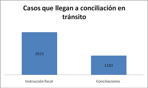 La Fiscalía intervino en 1.183 conciliaciones en igual período de tiempo. Este recurso se puede aplicar en la etapa de investigación previa. El acuerdo al que llegan los involucrados se realiza para evitar la judicialización de los delitos.