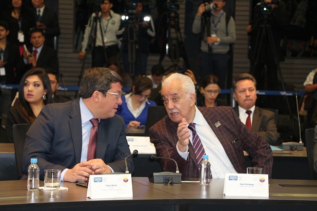 César Navas, ministro Coordinador de Seguridad (izq.), y Galo Chiriboga Zambrano, fiscal General de Ecuador (der.), participaron en el evento en la Unasur.
