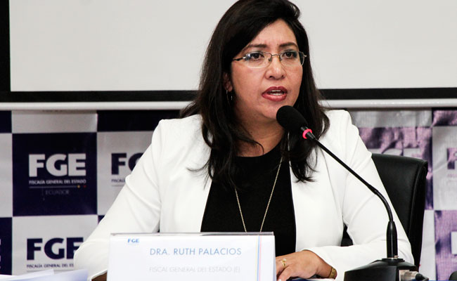 Quito, 15 de enero de 2019.- La Dra. Ruth Palacios Brito, Fiscal General del Estado (e), en rueda de prensa, volvió a comprometer los esfuerzos de la institución para luchar contra la corrupción y los delitos que afectan a la sociedad ecuatoriana. Además, solicitó el apoyo de la Contraloría General del Estado y de la Unidad de Análisis Financiero y Económico (UAFE), a quienes pidió un trabajo mancomunado para la recuperación de activos producto de actividades ilícitas.