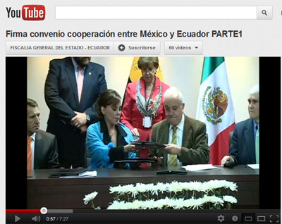 Galo Chiriboga Zambrano, fiscal General del Ecuador, y Marisela Morales Ibáñez, Procuradora General de México, suscribieron  un  Acuerdo sobre intercambio de información y experiencias para el combate a la delincuencia organizada transnacional, narcotráfico y  delitos conexos.