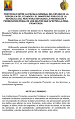 La firma del documento se realizó en el marco del Taller Binacional de Fiscales y Policías de la zona Transfronteriza Perú-Ecuador, que se desarrolla en Machala (El Oro), y que concluye el 20 de abril del 2012.