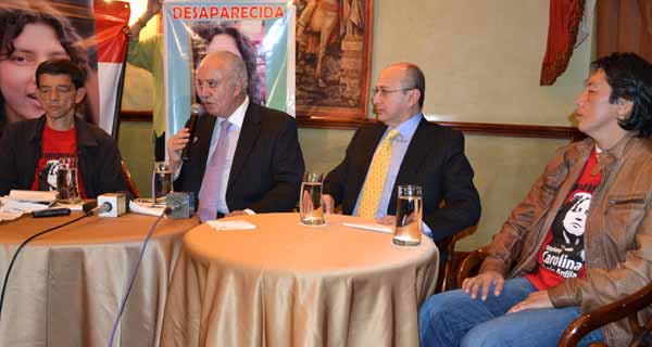 De izquierda a  derecha: Walter Garzón, padre de Carolina Garzón Ardila;   Galo Chiriboga Zambrano, fiscal General del Estado de Ecuador; Eduardo Montealegre Lynett, fiscal General de de Colombia y  Elba Flor  Ardila, tía de  Carolina.