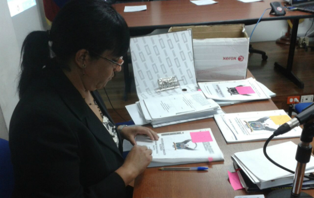 La fiscal Moreno mostró al Tribunal como prueba documental un oficio emitido por el Consejo de la Judicatura, el cual demostraría que una de las procesadas en su calidad de notaria habría recibido más de 500.000 dólares americanos.