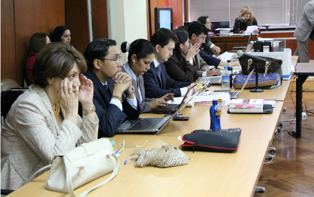 Quito, 5 de marzo del 2015.- En el cuarto día de audiencia de juicio contra 9 acusados de peculado bancario, la Fiscalía concluyó la presentación de sus 23 testigos entre peritos, auditores y exfuncionarios del Banco Cofiec.
