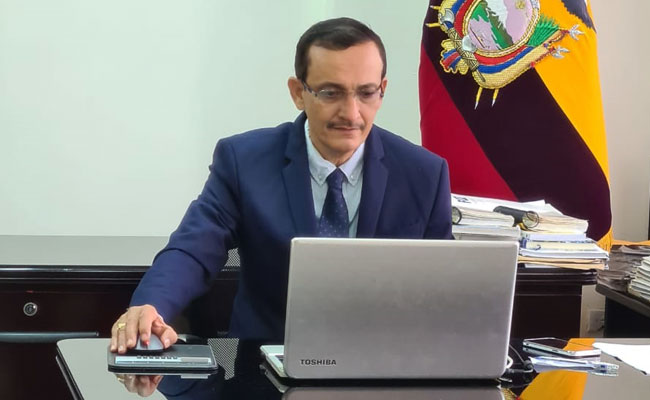 Esmeraldas (Esmeraldas), 27 de mayo de 2021.- Carlos Espinosa Arteaga, fiscal provincial de Esmeraldas, presentó la rendición de cuentas 2020 –vía telemática– esta mañana.