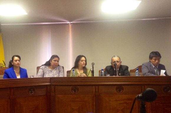 Quito, 16 de junio del 2014.- El objetivo es evitar que se vulneren los derechos de los procesados como integrantes de una nacionalidad indígena. Así lo argumentó, esta mañana, la Fiscalía General en la audiencia pública de consulta en la Corte Constitucional sobre la aplicabilidad de una posible pena por el delito de genocidio ante el ataque a familias en aislamiento voluntario.