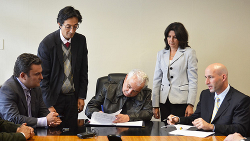 Quito, 13 de enero de 2012.– Con el objetivo de combatir la delincuencia organizada nacional e internacional, en un marco de respeto a los derechos humanos, se suscribió el acta de compromiso para el Funcionamiento del Sistema de Vigilancia Técnica – Electrónica, en la Fiscalía General del Estado.
