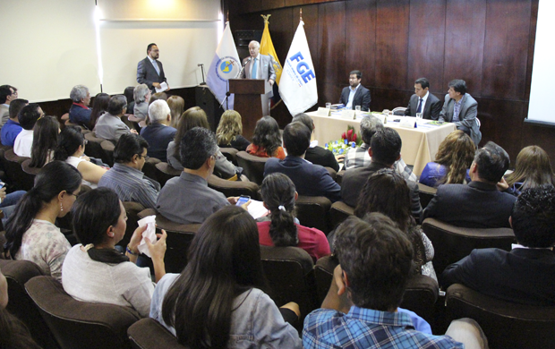 Quito, 02 de octubre de 2015.- Como parte del convenio firmado entre la Fiscalía y la Pontificia Universidad Católica del Ecuador (PUCE) se presentó la Revista Ecuatoriana de Medicina y Ciencias Biológicas, que recopila los primeros estudios, monografías y planes de trabajo, del primer curso de Entomología Forense dictado en 2013.