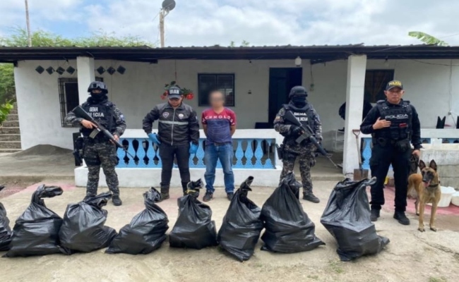 En el operativo efectuado en una finca del cantón Yaguachi, en la parroquia Cone (Guayas), se incautaron 240 bloques de cocaína (195 kilos), sepultados en tanques plásticos, además de cuatro armas, seis vehículos, una motocicleta y 14.575 dólares en efectivo.