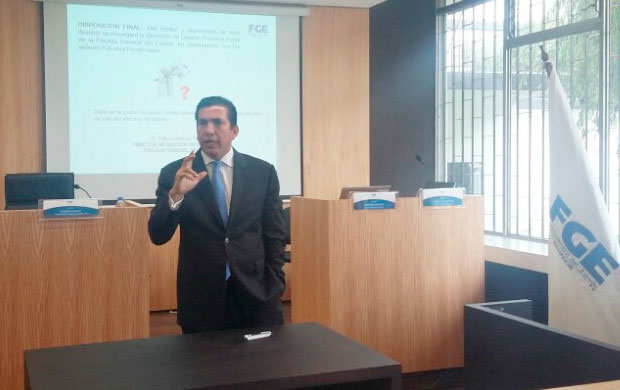 Wilson Merino, Director de Gestión Procesal de la Fiscalía General del Estado, expuso en el evento.