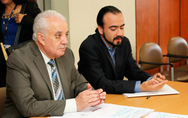 El fiscal General del Estado, Galo Chiriboga (izq.) junto a Fidel Jaramillo, director de la Comisión de la Verdad y Derechos Humanos, en la audiencia.