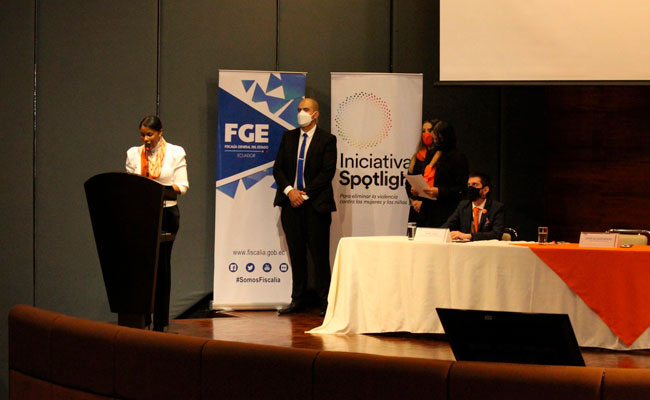 Quito (Pichincha), 24 de noviembre de 2021.- En un evento público, la Fiscalía General del Estado (FGE) y la iniciativa Spotlight presentaron el “Protocolo Nacional para Investigar Femicidios y Otras Muertes Violentas de Mujeres y Niñas”, documento que fue suscrito por la titular de la Institución, Diana Salazar Méndez.