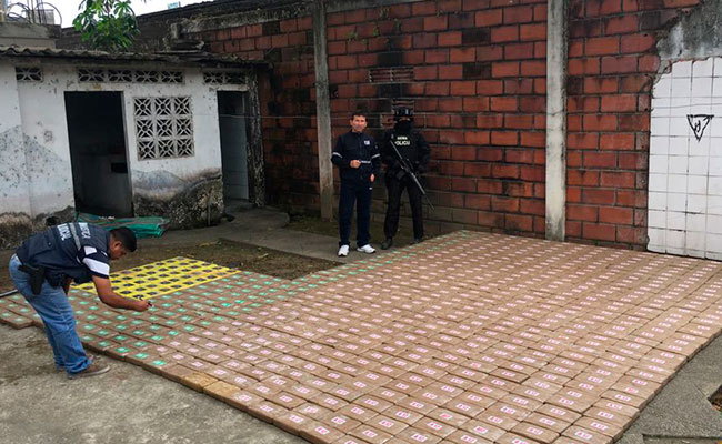 En una de las fincas allanadas en Mocache se encontró enterrada, en una caleta, varios sacos de yute con 700 paquetes tipo ladrillo que contenían un total de 822 kilos de cocaína.