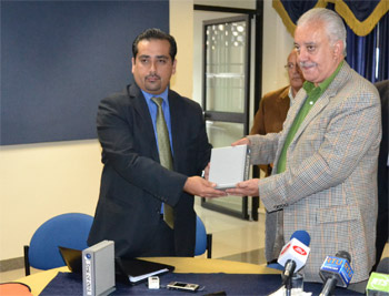 Galo Chiriboga anunció que el material bibliográfico entregado formará parte de la biblioteca de la institución, pues constituye un importante instrumento de consulta para la ciudadanía en general. Comunicación Social.- fpp