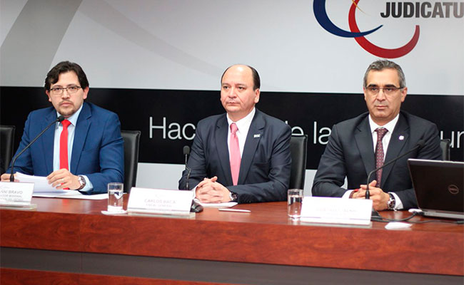 Quito, 01 de febrero de 2018.- Con el propósito de que todas las actuaciones pre procesales y procesales penales generadas por Agentes Fiscales, sean notificadas en los casilleros electrónicos de los sujetos procesales, el Dr. Carlos Baca Mancheno, Fiscal General del Estado y el Dr. Gustavo Jalkh, Presidente del Consejo de la Judicatura, firmaron un Convenio para vincular las plataformas informáticas de ambas instituciones, a través de un servicio WEB.