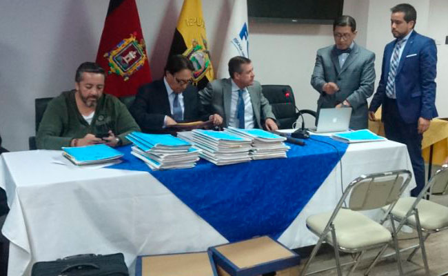 Quito, 26 de enero de 2018.- Como parte de las investigaciones que realiza la Fiscalía General de Estado y respetando el debido proceso, la mañana y tarde del pasado jueves desde el consulado de México y a través de video conferencia rindió su versión libre y voluntaria el empresario Enrique Cadena, horas más tarde lo hizo el activista Fernando Villavicencio. Ambas versiones fueron rendidas ante el Dr. Fabián Salazar, fiscal que lleva el proceso.