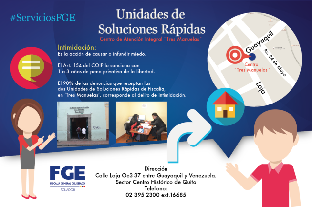 -Las oficinas de la Fiscalía del Centro de Atención Integral ‘Tres Manuelas’ están ubicadas en la calle Loja, entre Venezuela y Guayaquil, en el sector del Centro Histórico.