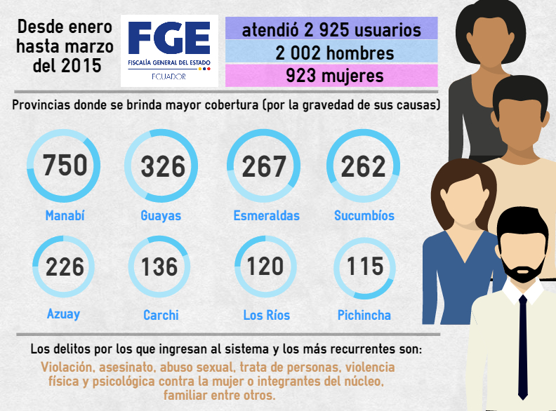 Las instituciones estatales se unen con el objetivo de asistir a una víctima que ingresa al Sistema. Por su parte la Fiscalía ofrece vivienda y alimentación, el Ministerio del Trabajo proporciona alternativas laborales, mientras que el Ministerio de Inclusión Económica y Social entrega asistencia social y educación a los menores de edad que estén bajo la cobertura interinstitucional.