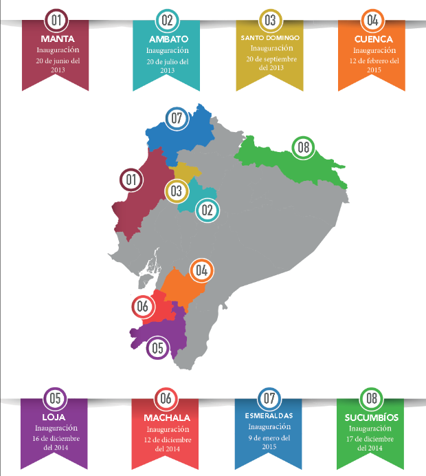 Manta, Santo Domingo, Ambato, Machala, Loja, Nueva Loja, Esmeraldas y Cuenca fueron las localidades escogidas.