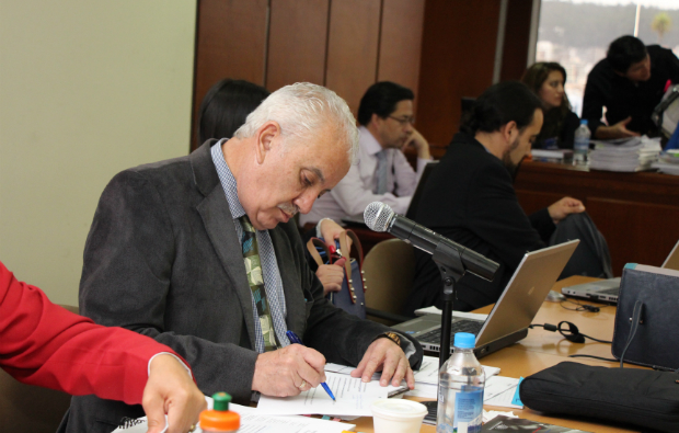 Chiriboga Zambrano abrió la audiencia con la exposición de su teoría del caso ante el tribunal conformado por los jueces Wilson Merino, Paúl Íñiguez y Richard Villagómez y de la acusación particular y de los procesados.