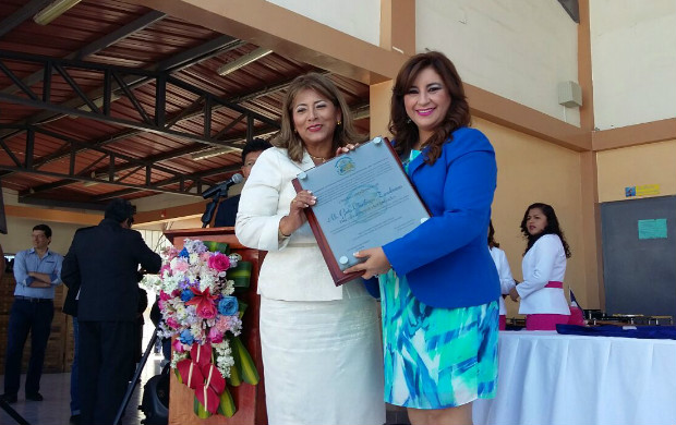 La fiscal Patricia Morejón recibió la placa a nombre de Galo Chiriboga Zambrano, fiscal General del Estado.
