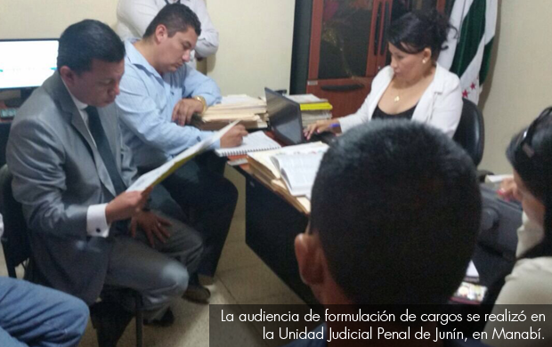 La medida cautelar se dictó en audiencia de formulación de cargos realizada la tarde del 28 de mayo de 2015, en la Unidad Judicial de Garantías Penales, con sede en Junín, en la provincia de Manabí, donde el fiscal Rubén Balda, inició instrucción fiscal contra los dos implicados por sicariato.