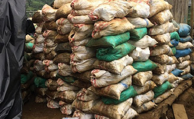 Entre las evidencias fueron incautados: 200 sacos con material mineralizado, taladros para perforación, alrededor de 100 sacos de explosivos, un arma de fuego, municiones, entre otras.