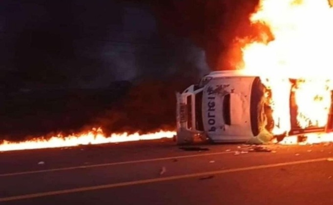 Después procedieron a prender fuego al vehículo, que quedó totalmente destruido en la vía.