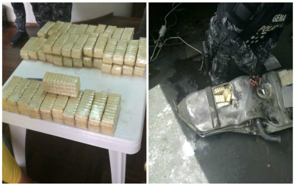 17 kilos 25 gramos de heroína en cápsulas estaban escondidas en el tanque de combustible de un automóvil.