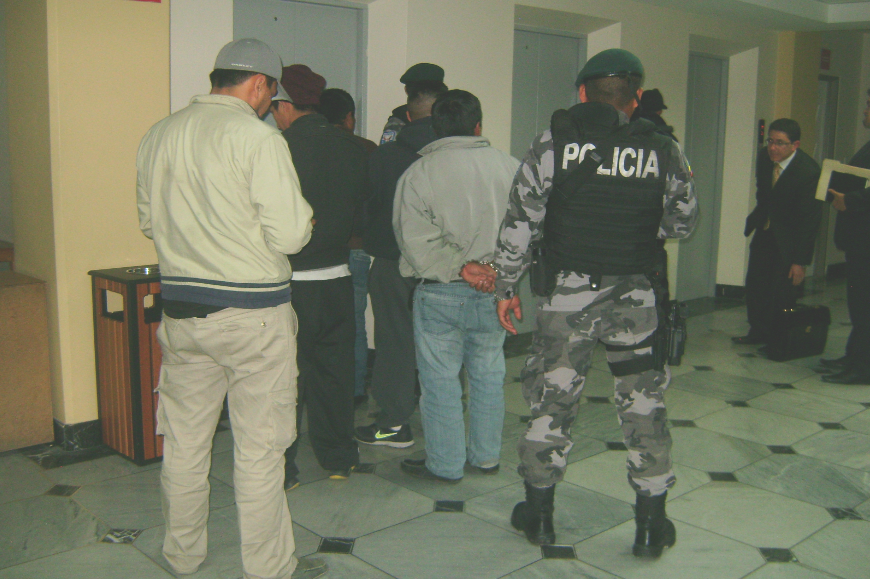 Cuenca, 9 de agosto de 2014.- La Fiscalía formuló cargos  contra  cuatro ciudadanos por el delito de plagio. Ellos fueron capturados, durante un operativo, efectuado en Cuenca y Gualaceo, por ser los presuntos responsables de la retención de un joven ecuatoriano de 21 años, quién se encontraría en una bodega en Guatemala.