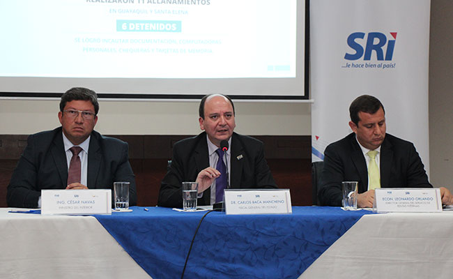 El Fiscal General del Estado, Dr. Carlos Baca Mancheno, el Ministro del Interior, Ing. César Navas y el Director del Servicio de Rentas Internas (SRI), Ec. Leonardo Orlando, informaron que estas acciones para combatir a la corrupción privada, han sido desarrolladas por la Unidad Especializada de Lucha contra Delitos Tributarios y Aduaneros, creada el 8 de agosto de 2017.