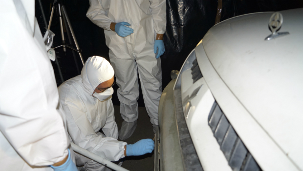Santa Elena, 09 de enero de 2014.- Como parte de las diligencias dirigidas por la Fiscalía en torno al fallecimiento de Edith Bermeo, artista ecuatoriana conocida como ‘Sharon’, la brigada de Criminalística de la Policía Nacional realizó la prueba de luminol en los dos vehículos que están implicados en el hecho.