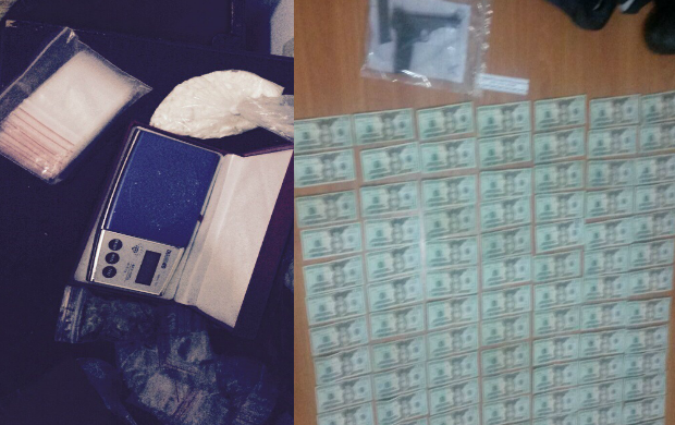 Entre las evidencias constan dos vehículos, una moto, dinero en efectivo y gran cantidad de sustancias sujetas a fiscalización como cocaína y marihuana.