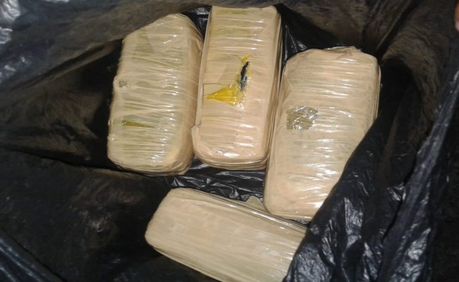 Al revisar la carga en la bodega del automotor, se encontraron cajas con un peso considerable. Con la ayuda de un taladro, personal antinarcóticos descubrió que en su interior se encontraba una sustancia vegetal verdosa.