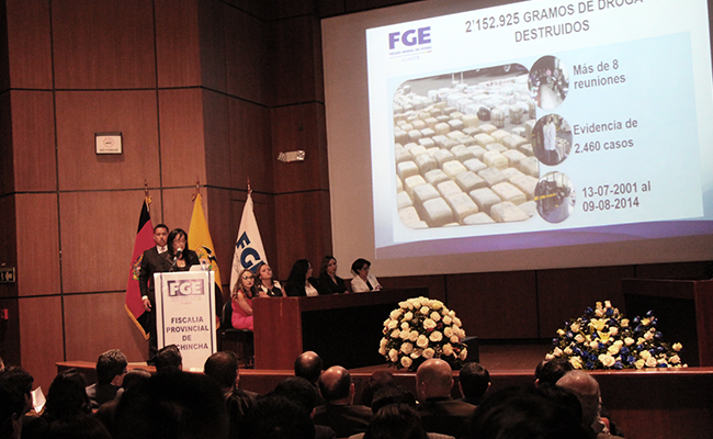 Otro de los logros destacados fue la destrucción de 2’152.925 gramos de sustancias sujetas a fiscalización que se encontraba embodegada desde el año 2001 al 2014, como evidencia de 2.460 casos en Pichincha.