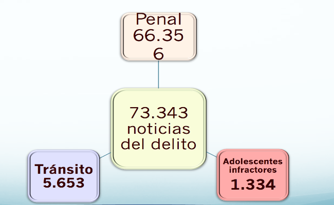 Durante 2016, se registraron 73.343 noticias del delito, de las cuales 66.356 están en