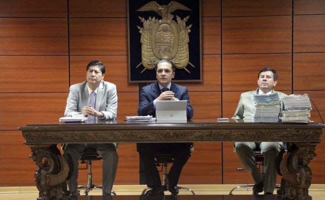 Quito (Pichincha), 13 de enero de 2020.- Tribunal acogió el pedido de la Fiscalía General del Estado y rechazó los recursos de apelación presentados por los ciudadanos Marco C. y Diego T., quienes cumplen una sentencia de seis años por asociación ilícita.