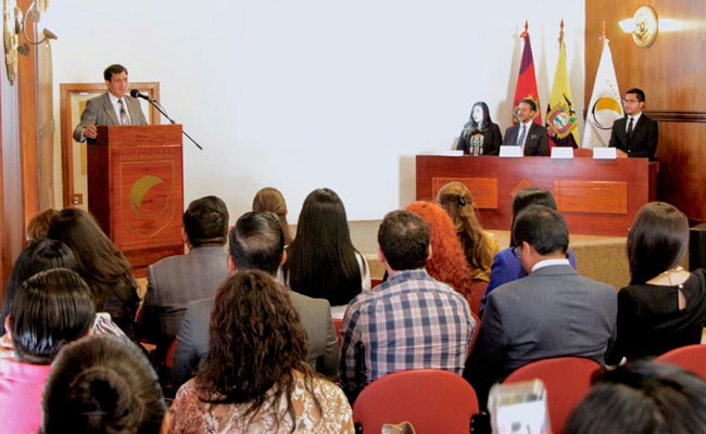 Quito, 13 de septiembre de 2019.- El fiscal general del Estado subrogante, Dr. Wilson Toainga, inauguró el “Primer Programa Intensivo, Medidas para Combatir el Comercio Ilegal”, organizado por la Dirección de Educación Continua de la Universidad de Los Hemisferios, en coordinación con la Dirección de Capacitación y Fortalecimiento Institucional de la Fiscalía General del Estado.