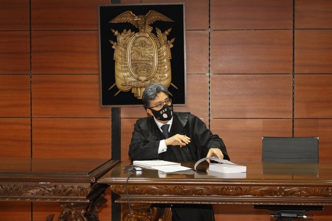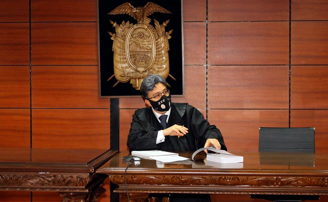 Quito (Pichincha), 28 de agosto de 2020.- El juez nacional Marco Rodríguez sustituyó –por mandato legal– la prisión preventiva por arresto domiciliario, colocación de grillete electrónico y prohibición de salida del país para el procesado Edmundo T., exdirector del Servicio de Contratación de Obras (Secob), mientras que para Ángel A. ratificó la prisión preventiva.
