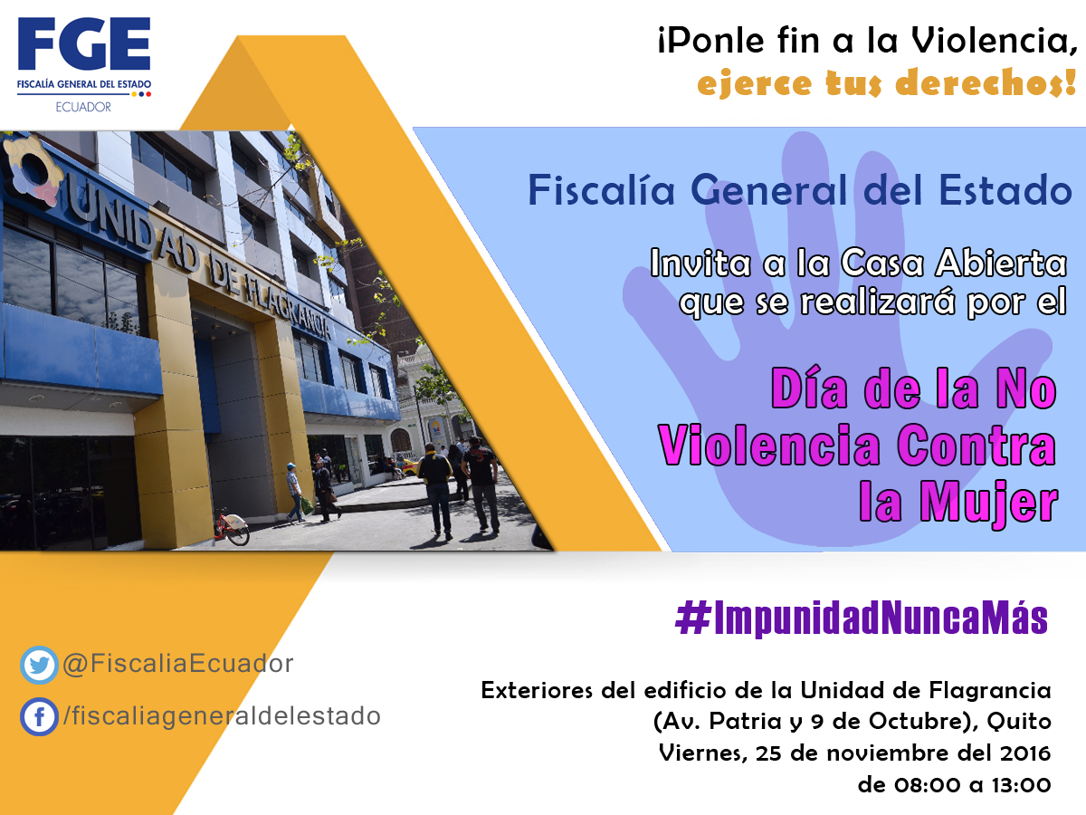 La exposición se realizará en la Casa Abierta que se instalará este 25 de noviembre del 2016, desde las 08:00 hasta las 13:00, en los exteriores del edificio de Flagrancia, en Quito (Av. Patria y 9 de Octubre).