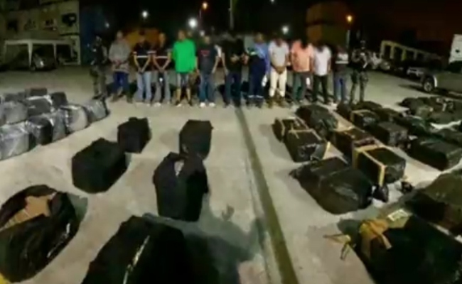 Guayaquil (Guayas), 27 de octubre de 2022.- La Fiscalía de Guayas procesa a diez personas que fueron detenidas en posesión y cuando transportaban más de dos y media toneladas de cocaína, mientras ingresaban el alcaloide al interior de dos camionetas a un galpón.