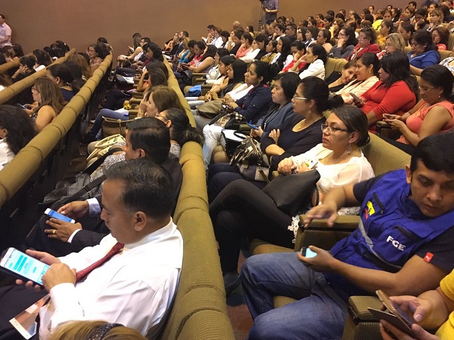 Guayaquil, 28 de marzo del 2017.- La Fiscalía General del Estado y la Corporación Nacional de Telecomunicaciones (CNT) presentaron, ante cerca de 300 juezas, fiscales, alcaldesas, concejalas y activistas por las luchas de género de todo el país, la aplicación para teléfonos móviles Junt@s CNT, una herramienta tecnológica desarrollada para prevenir la violencia de género.