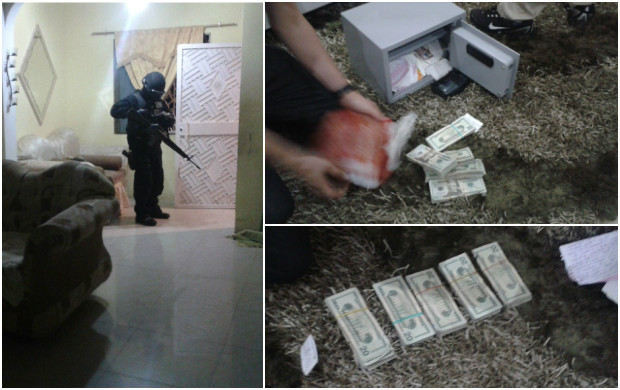 Durante las incursiones se decomisaron 10.000 dólares en efectivo -que al parecer estaba escondido en una caja fuerte, además de vehículos, armas de fuego y teléfonos celulares entre otras evidencias.